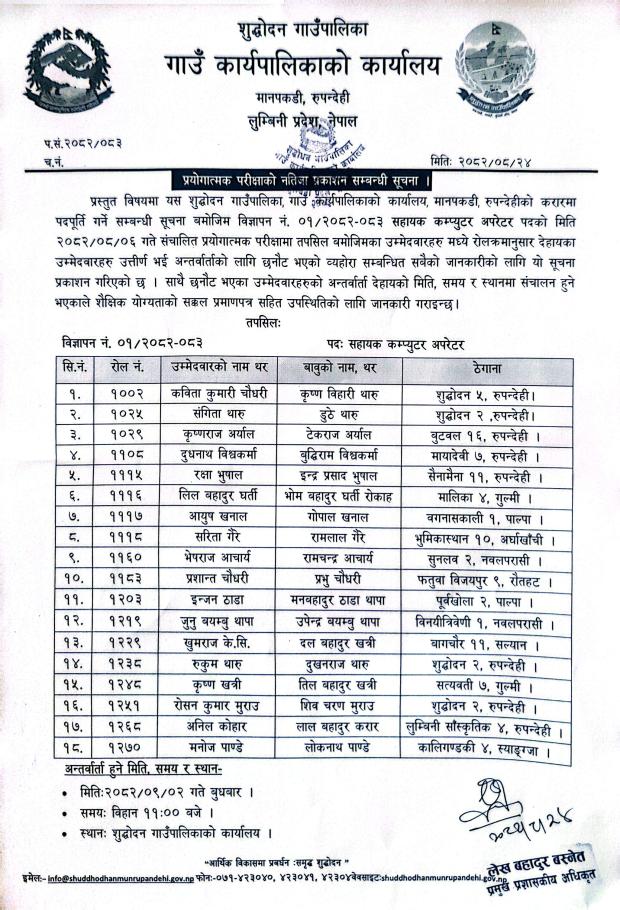 शुद्धोदन गाउँपालिका मानपकडी, रुपन्देही