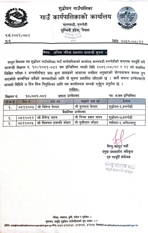 » अन्तिम नतिजा प्रकाशन सम्बन्धी सूचना।(अ.सव इन्जिनियर)