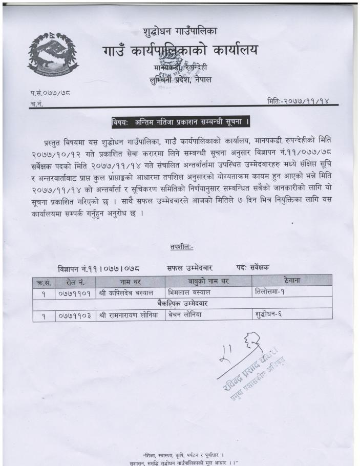 अन्तिम योग्यताक्रमको सुची प्रकाशन सम्बन्धी सुचना !