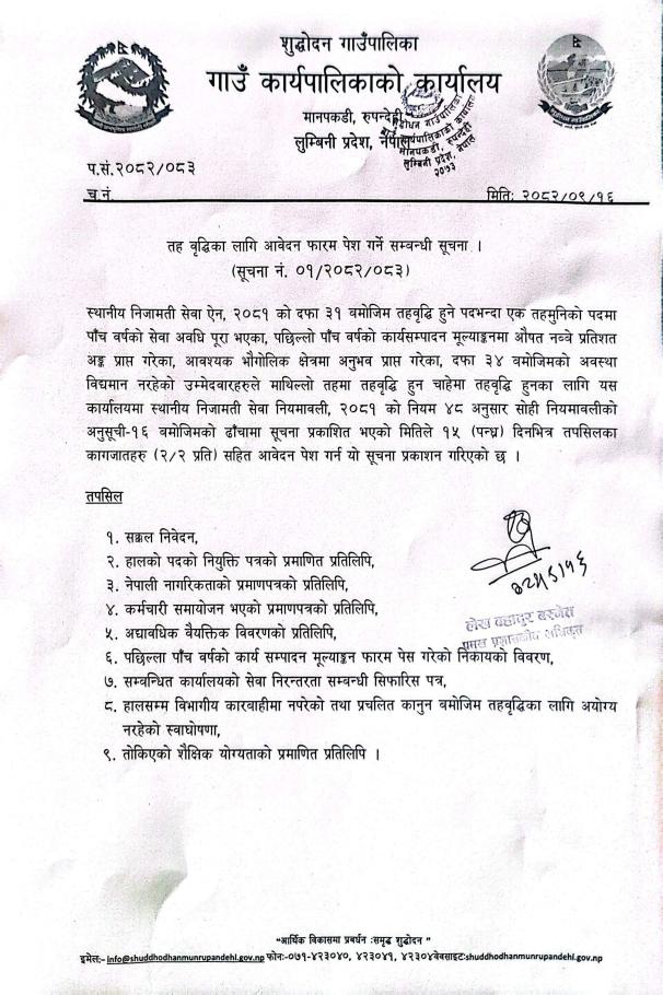 तह वृद्धिका लागि आवेदन फारम पेश गर्ने सम्बन्धी सूचना।