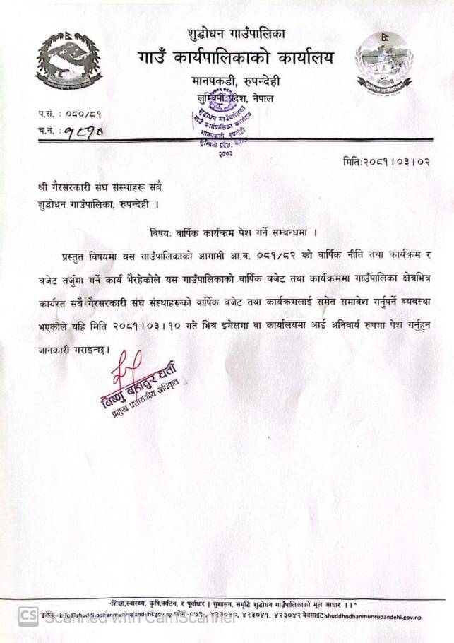 वार्षिक कार्यक्रम पेश गर्ने सम्बन्धमा ।