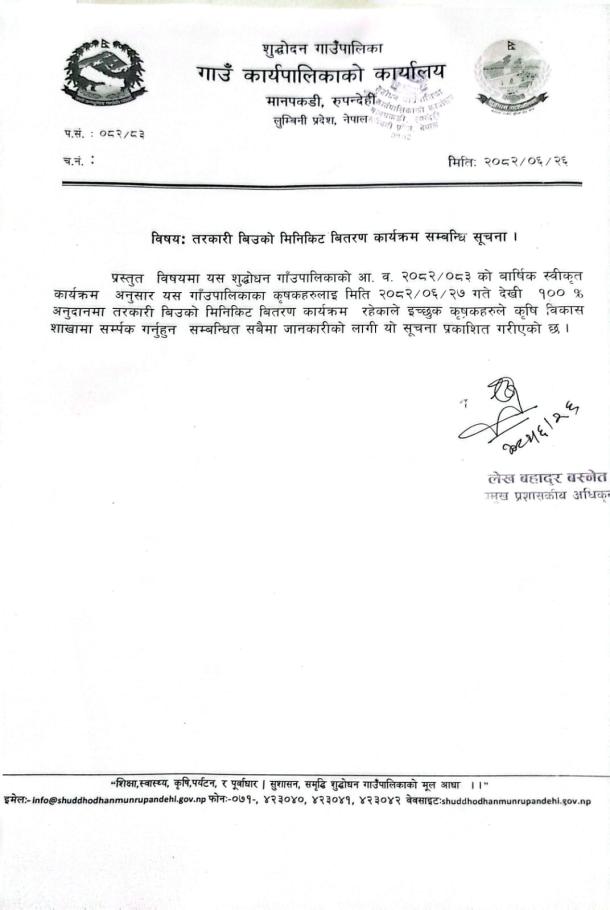 शुद्धोदन गाउँपालिका मानपकडी, रुपन्देही