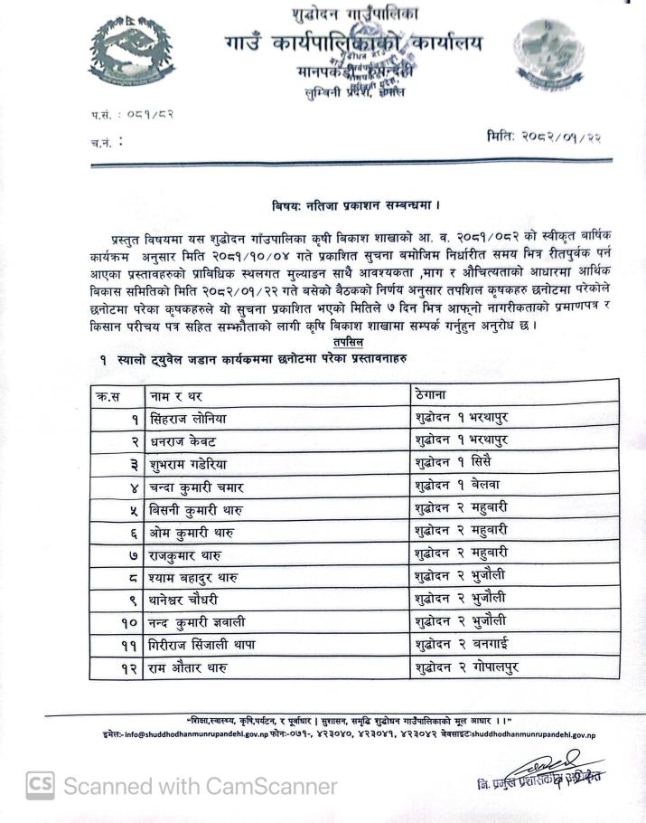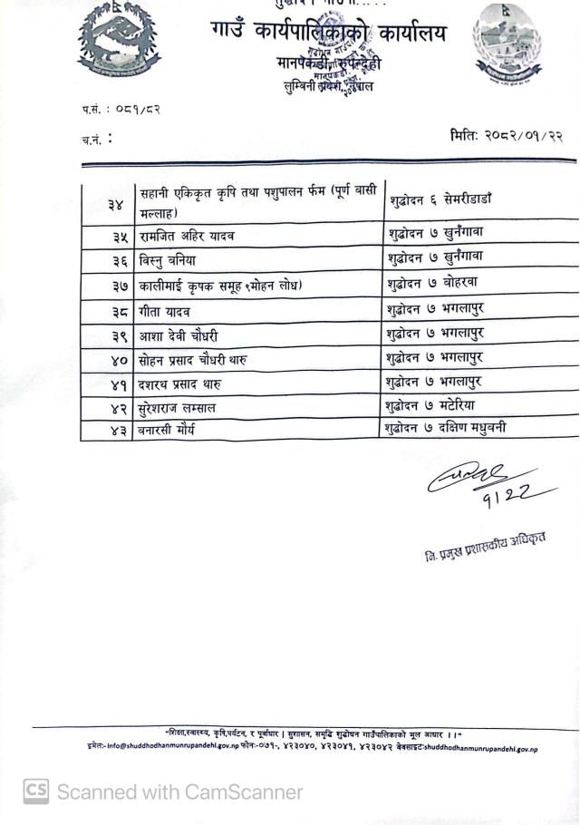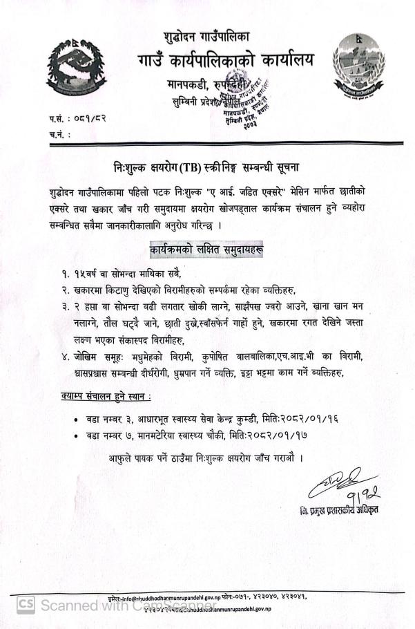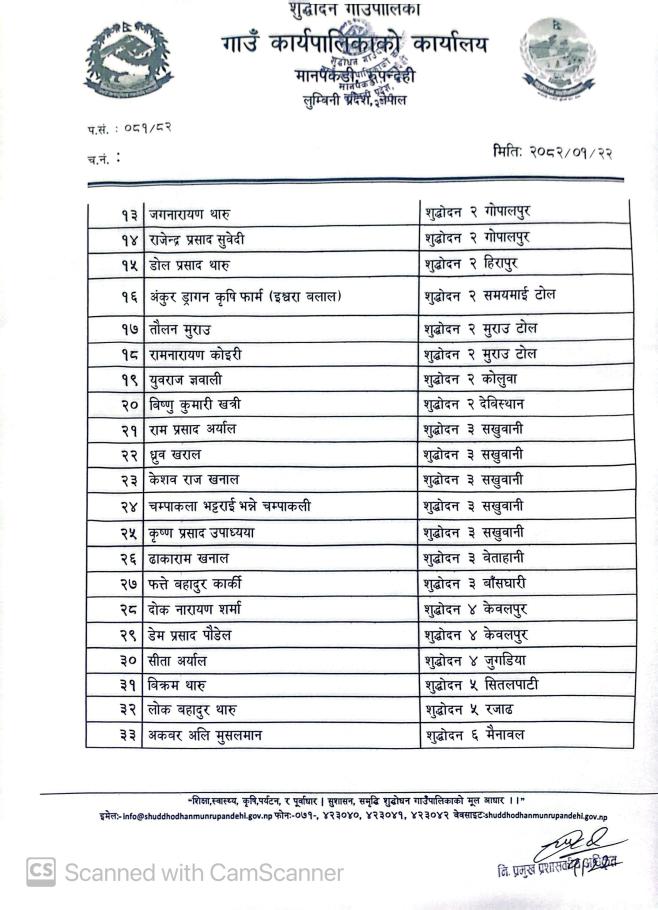 शुद्धोधन गाउँपालिका गाउँ कार्यपालिकाको कार्यालय, मानपकडी रुपन्देहीबाट जारी गरिएको १५ दिने सार्वजानिक सूचना ।